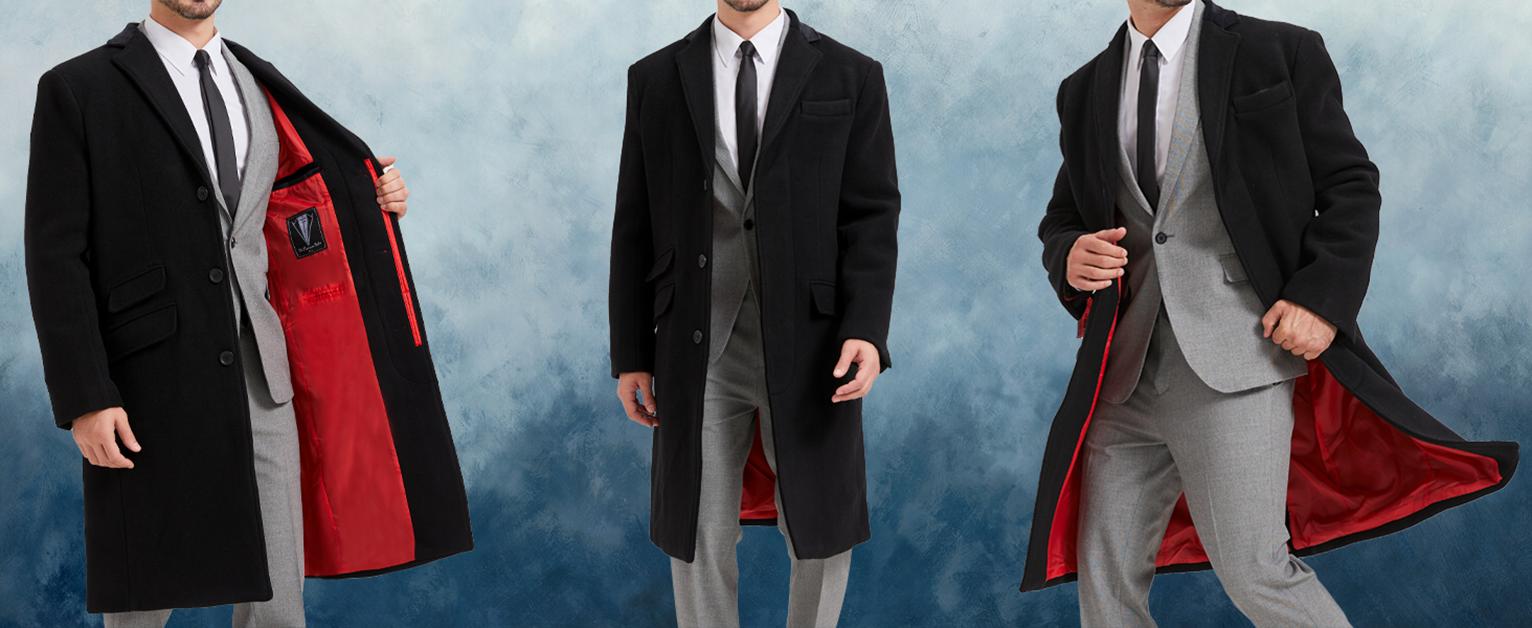 Black Wool Cashmere Bond Overcoat Red Lining